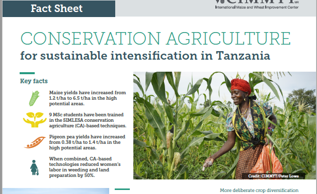 FACT SHEET: Conservation Agriculture for sustainable intensification in Tanzania Written by rllopez on March 26, 2019. Posted in New Resources. Read more on SIMlESA work in Tanzania conservation agriculture, sustainable intensification, tanzania Previous Next