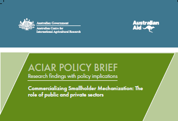 Commercializing Smallholder Mechanization: The role of public and private sectors Written by rllopez on June 18, 2019. ACIAR recommends that synergisms between public and private efforts are required for household mechanization. Previous Next