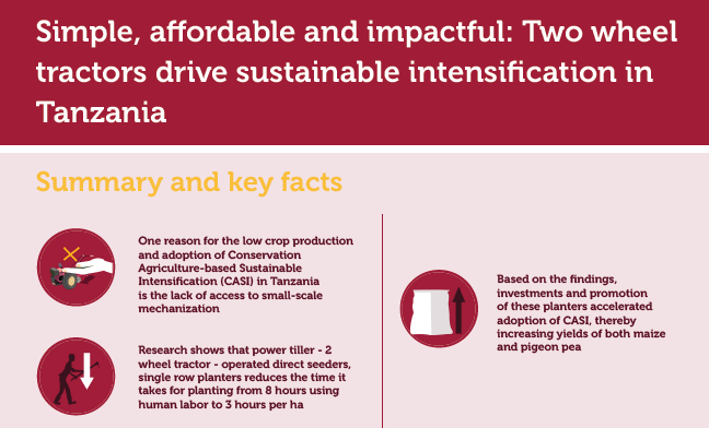 Simple, affordable and impactful: Two wheel tractors drive sustainable intensification in Tanzania Written by rllopez on June 18, 2019. CASI multi-sector approaches help promote appropriate farm mechanization in Tanzania.