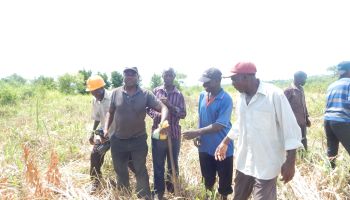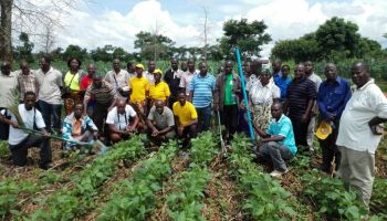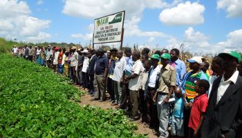 Farmers inspecting crops under Total Land Care project in Angonia, Mozambique