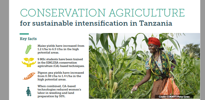 Conservation Agriculture for sustainable intensification in Tanzania Written by rllopez on June 27, 2019. This factsheet highlights SIMLESA’s implementation approaches and achievements in Tanzania.